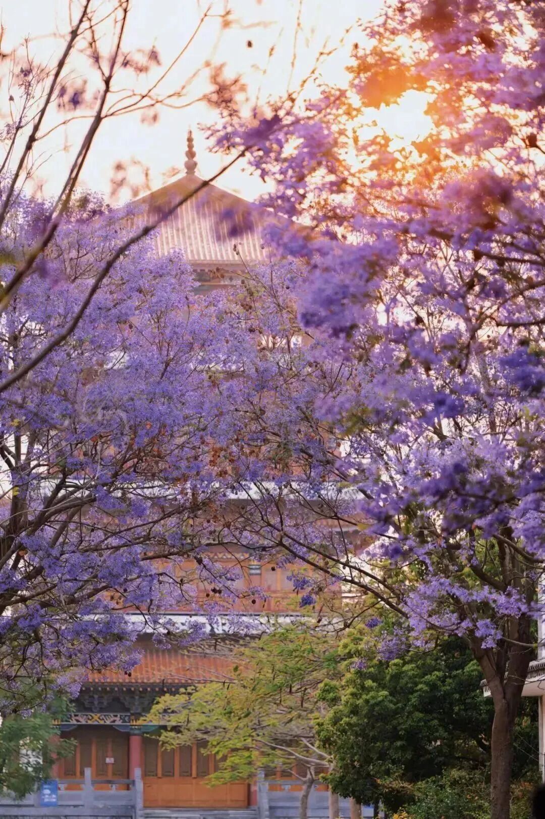 建水藍(lán)花楹也悄然盛開,微風(fēng)吹過,紫色花串隨風(fēng)搖曳。